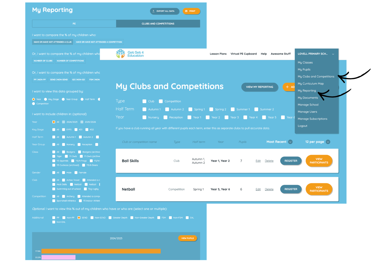 *Don’t forget to use the ‘Clubs and Competitions’ tool to keep track of who is attending your clubs. Using the ‘My Reporting’ feature will allow you to then access data on which pupils need additional support with attending extra curricular provision and also identify any specific groups of pupils that need attention.